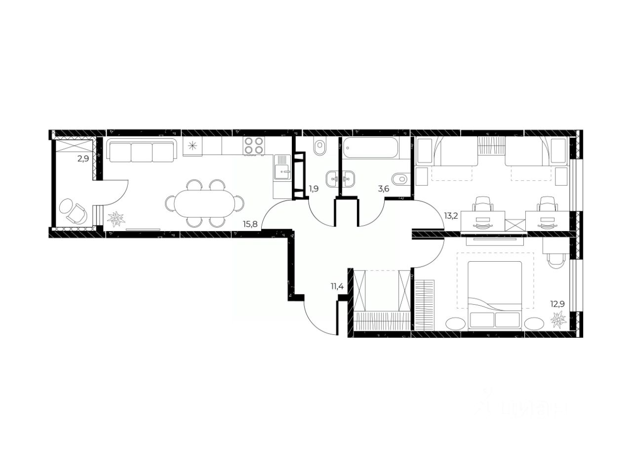 Общая площадь60,3 м²