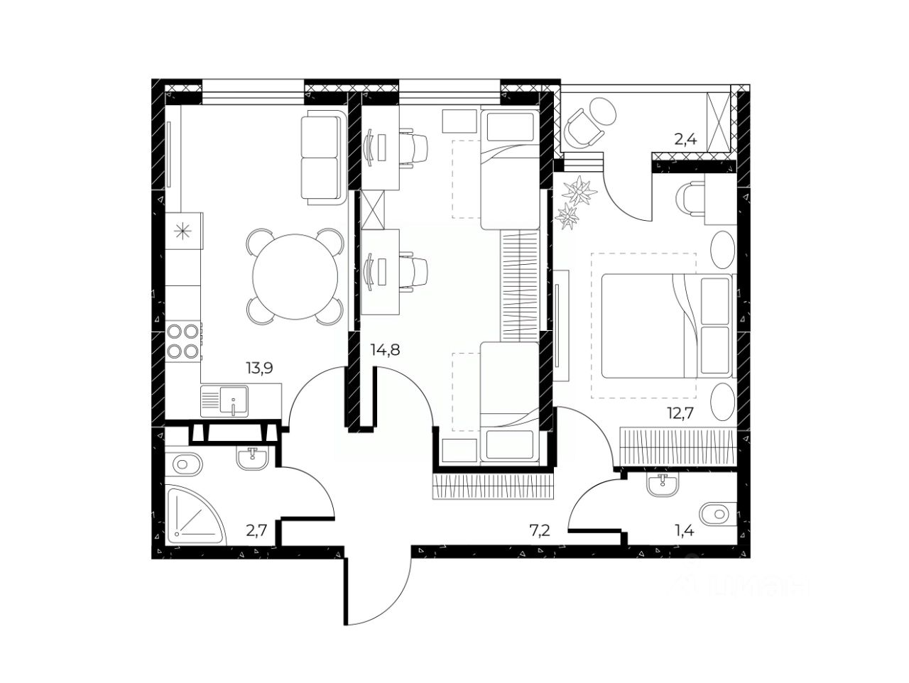 Общая площадь53,9 м²