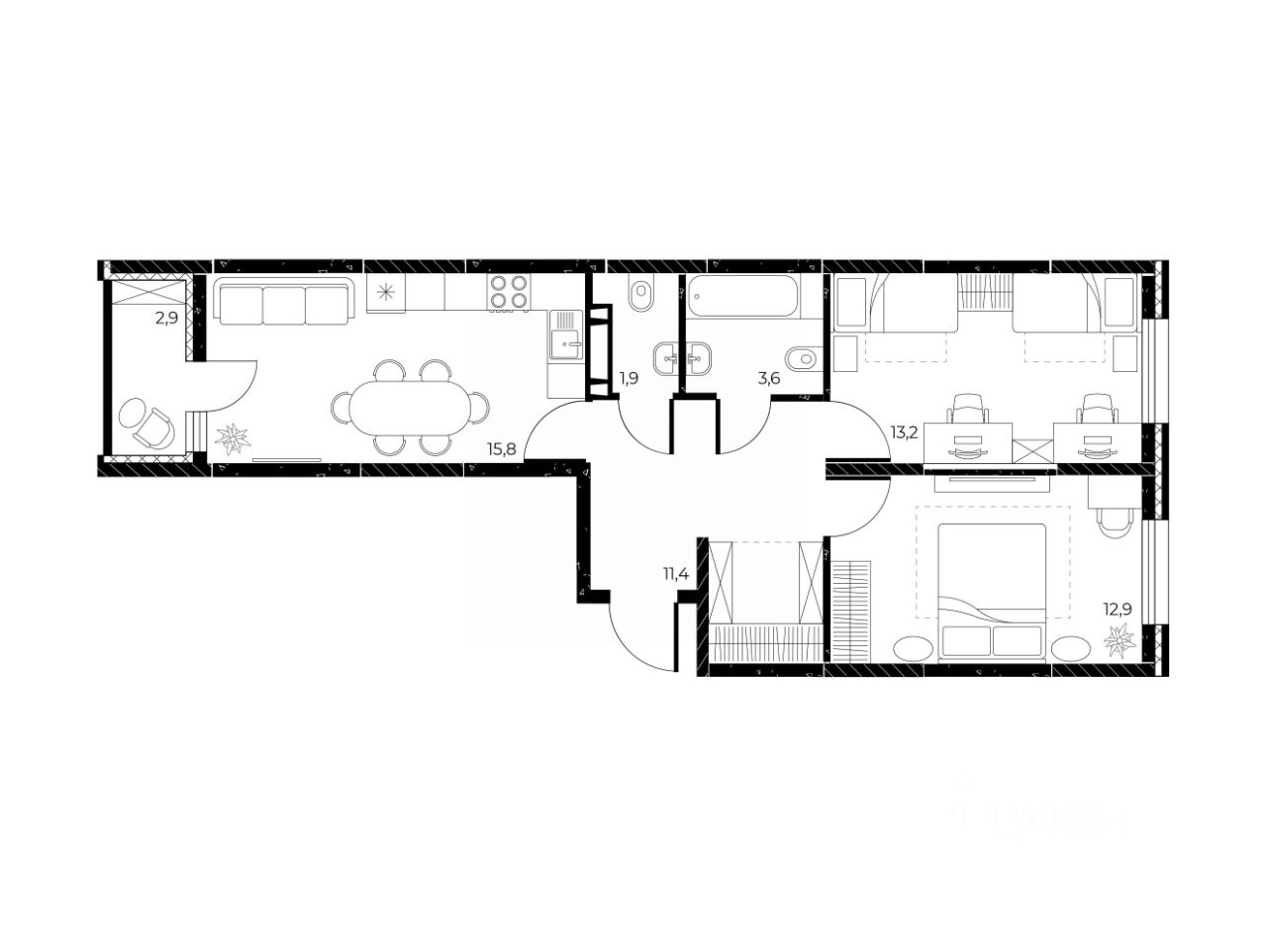квартиры с расположением комнат на 3 стороны света