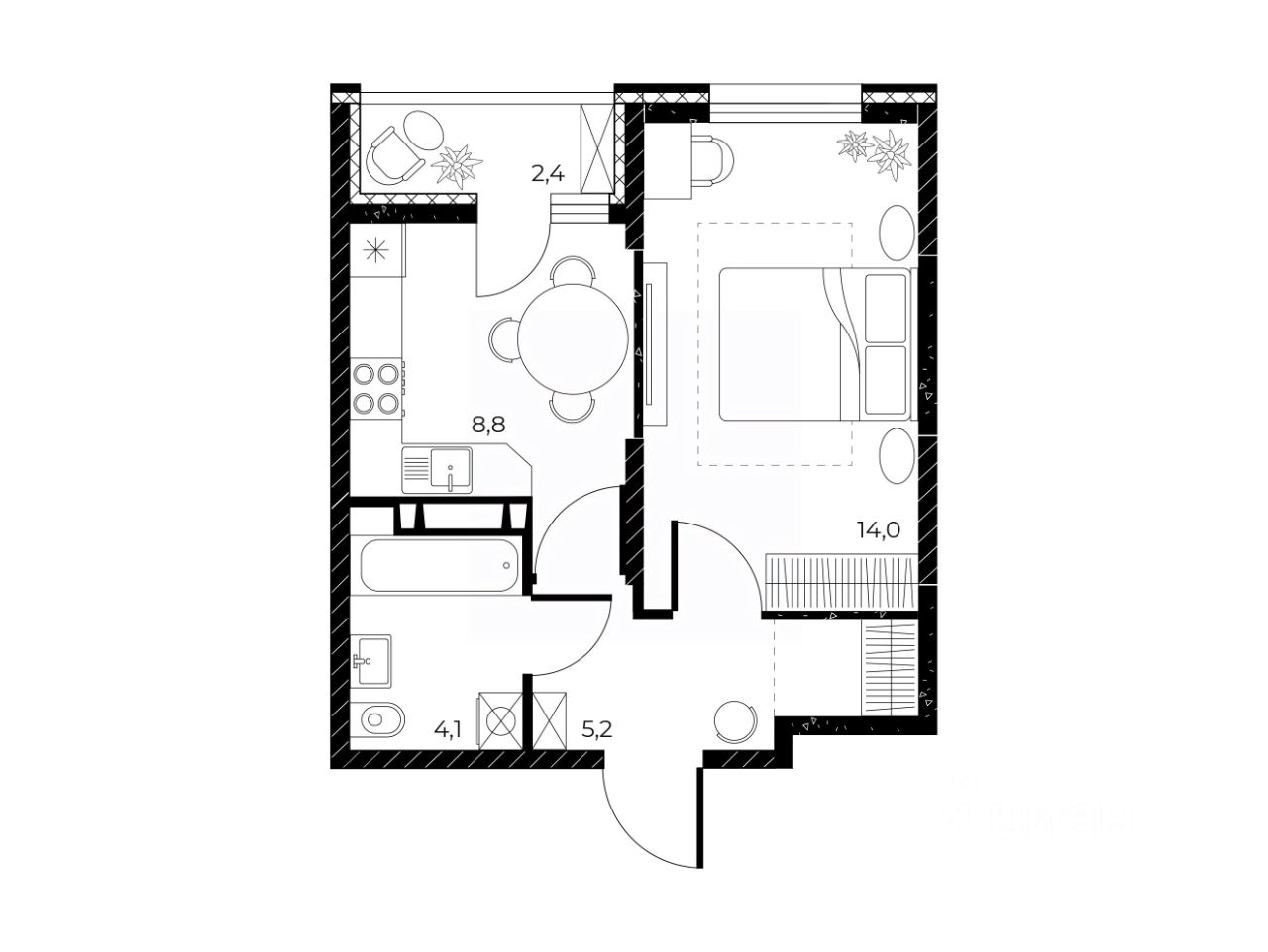 Общая площадь33,3 м²