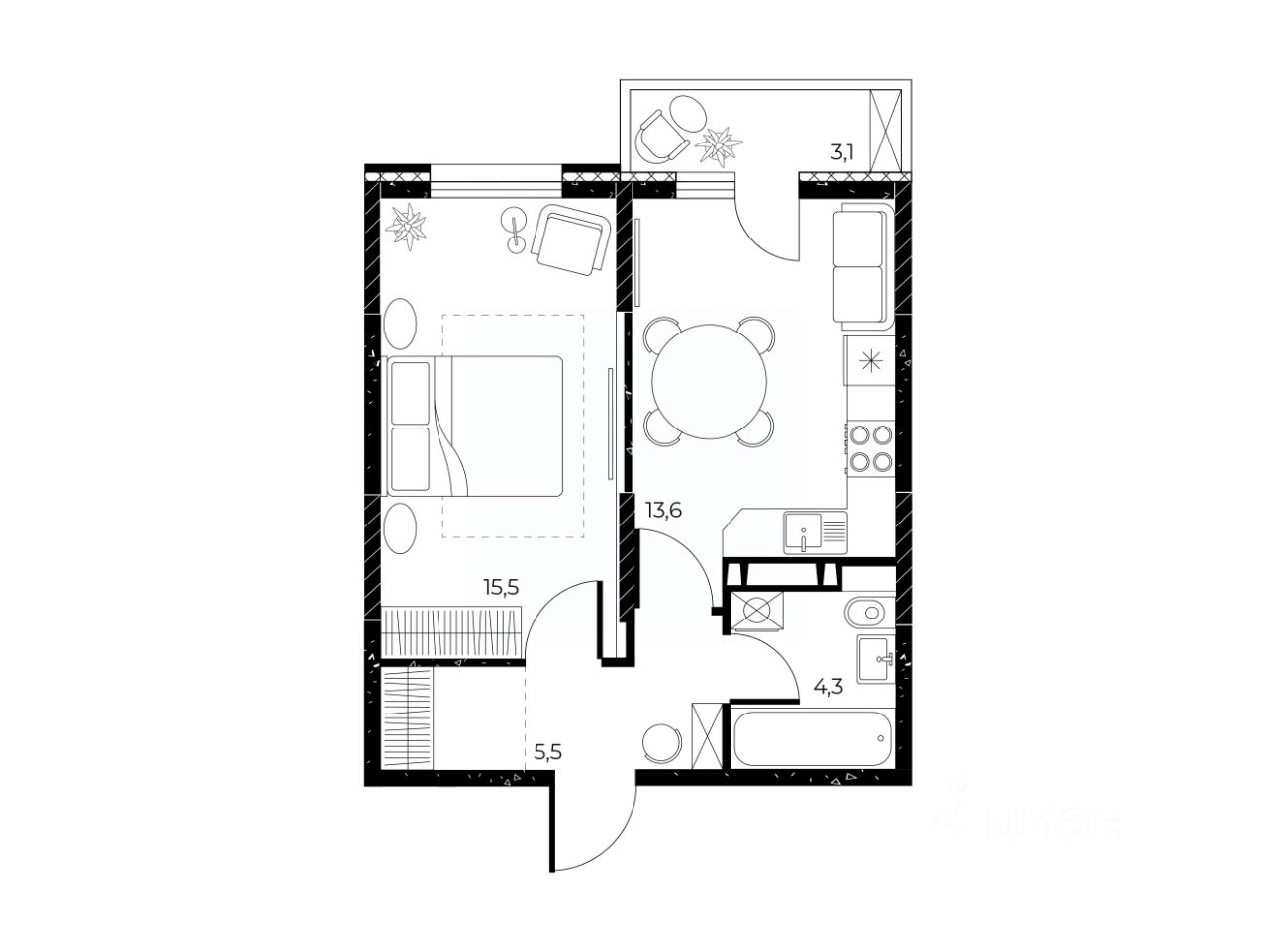 Общая площадь39,8 м²