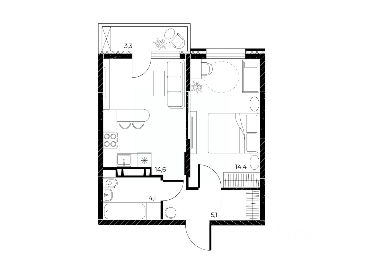 Общая площадь39,2 м²