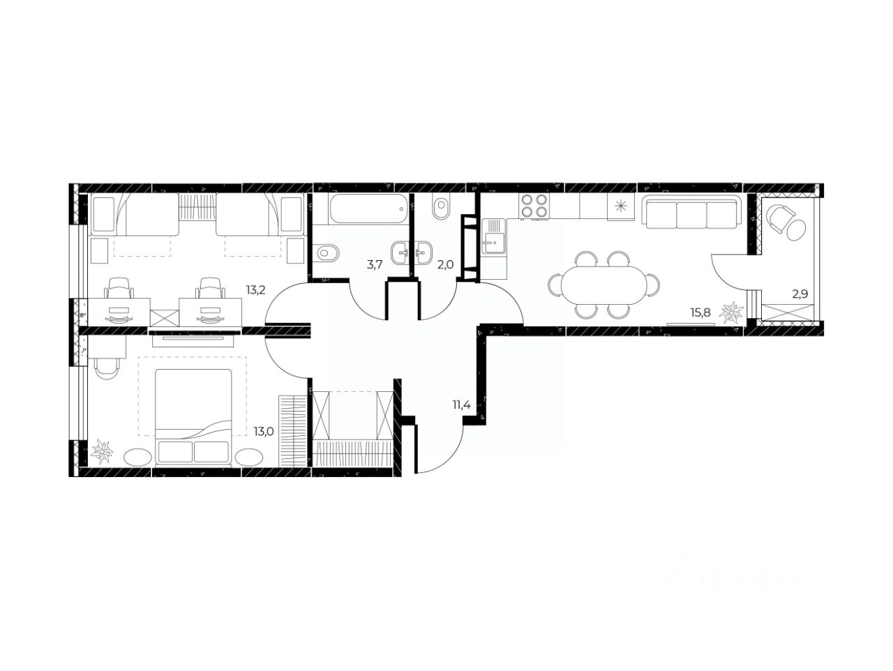 квартиры с расположением комнат на 3 стороны света