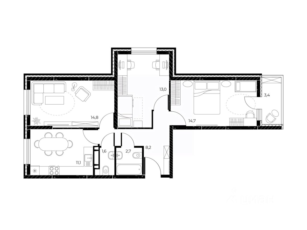 квартиры с расположением комнат на 3 стороны света