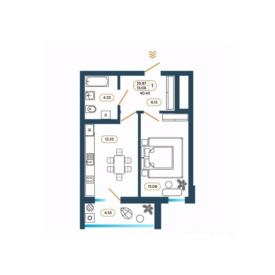 Продается 1-комн. квартира, 41,4 м²