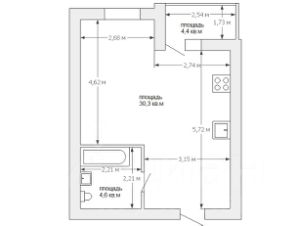 Общая площадь — 35,9 кв.м, в том числе: совмещённый санузел — 4,7 кв.м; застеклённая и утеплённая лоджия — 4,5 кв.м. Квартира не угловая, с удобной планировкой типа "студия" — просторное помещение, объединяющее кухонную и жилую зоны.