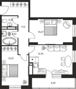 Продаётся 3-комнатная квартира в строящемся доме (Секции 2.1 - 2.2), срок сдачи: I-кв. 2027, общей площадью 68.58 кв.м., на 3 этаже. Новый жилой комплекс "Культура" от группы компаний "СК10" расположен по адресу: г. Ростов-на-Дону, по ул. Текучёва.