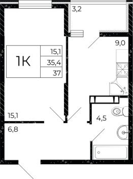 Общая площадь37 м²