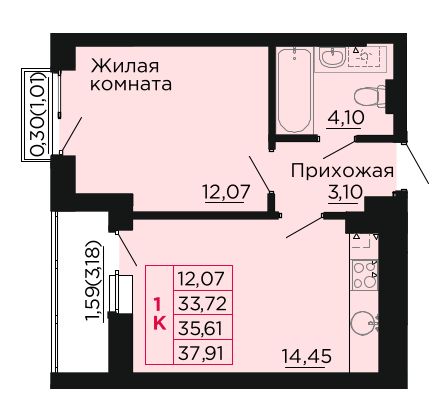 Продаётся 1-комнатная квартира 36 кв. м в центре Аксая, 5 км до Ростова. Дом сдан!