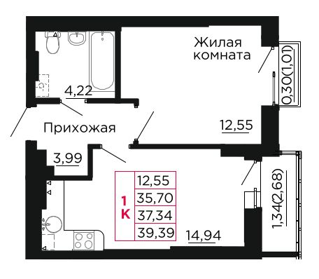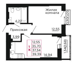 Продаётся 1-комнатная квартира 37,34 кв. м в центре Аксая, 5 км до Ростова. Сдача дома в 2025 году!