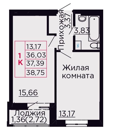 Продаётся 1-комнатная квартира 37,39 кв. м в центре Аксая, 5 км до Ростова.