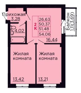 Продаётся светлая 2-комнатная квартира 51,48 кв. м в доме в центре Аксая, 5 км до Ростова. Сдача дома в 2026 году!
