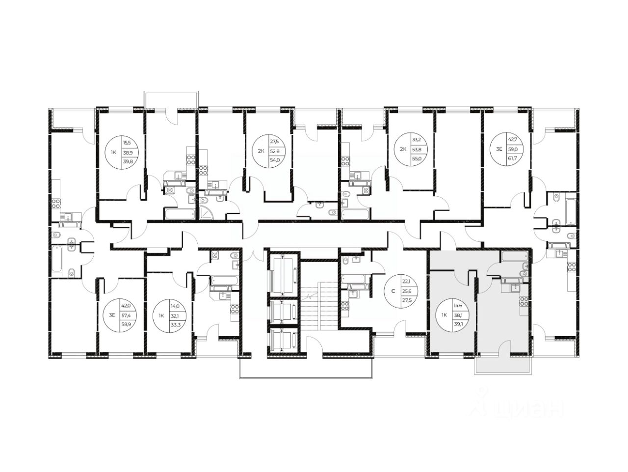 Общая площадь39,1 м²