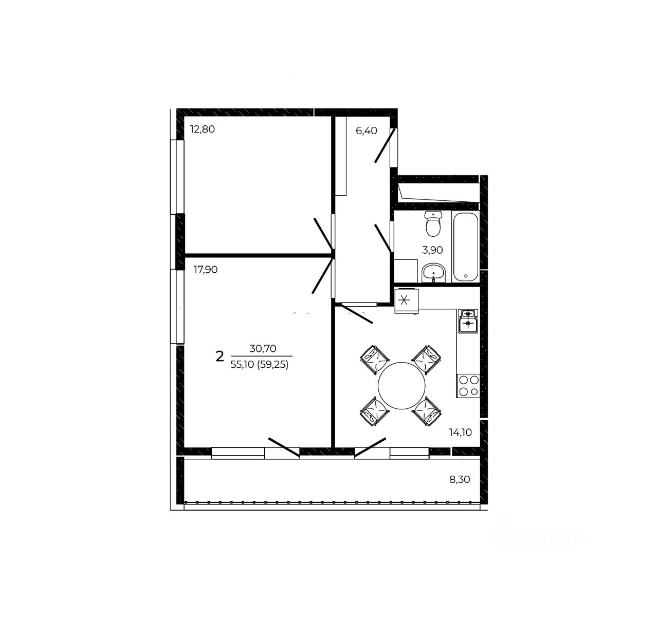 Общая площадь59,25 м²