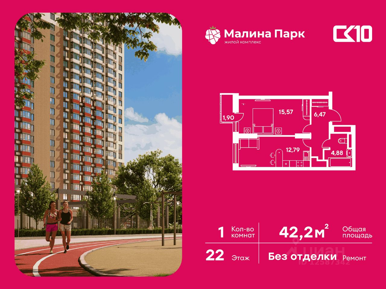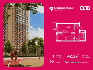 Продаётся 1-комнатная квартира в строящемся доме (Поз. 2-3), срок сдачи: II-кв. 2026, общей площадью 42.18 кв.м., на 22 этаже. Новый жилой комплекс "Малина парк" от группы компаний "СК10" расположен по адресу: г. Ростов-на-Дону, по ул. Малиновского.