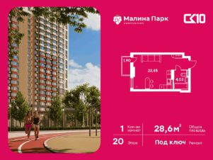 Продаётся студия в строящемся доме (Поз. 2-3), срок сдачи: II-кв. 2026, общей площадью 28.62 кв.м., на 20 этаже. Новый жилой комплекс "Малина парк" от группы компаний "СК10" расположен по адресу: г. Ростов-на-Дону, по ул. Малиновского.
