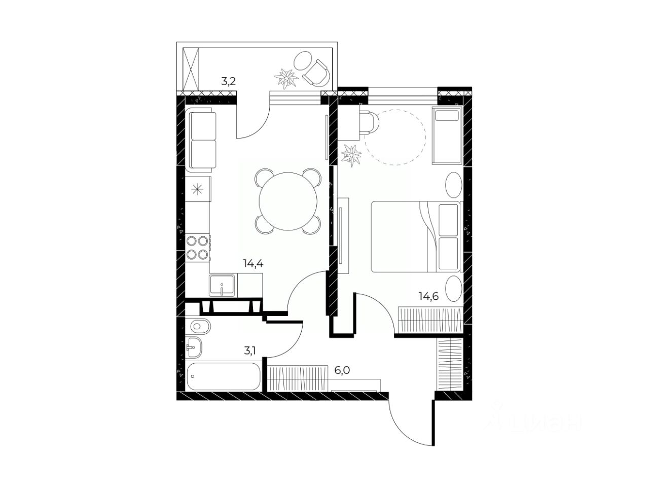 Общая площадь39,1 м²