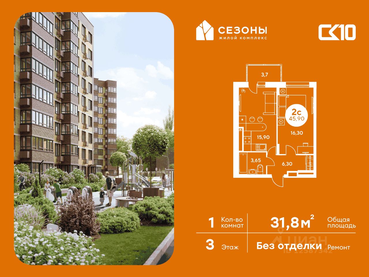 Продаётся студия в строящемся доме (Дом 1), срок сдачи: IV-кв. 2026, общей площадью 31.8 кв.м., на 3 этаже. ЖК Сезоны 1 это уникальный проект, созданный вдалеке от шума и суеты мегаполиса. Радоваться каждому дню в любом возрасте здесь будет проще - внутреннее состояние удовольствия поддерживает окружающая обстановка.