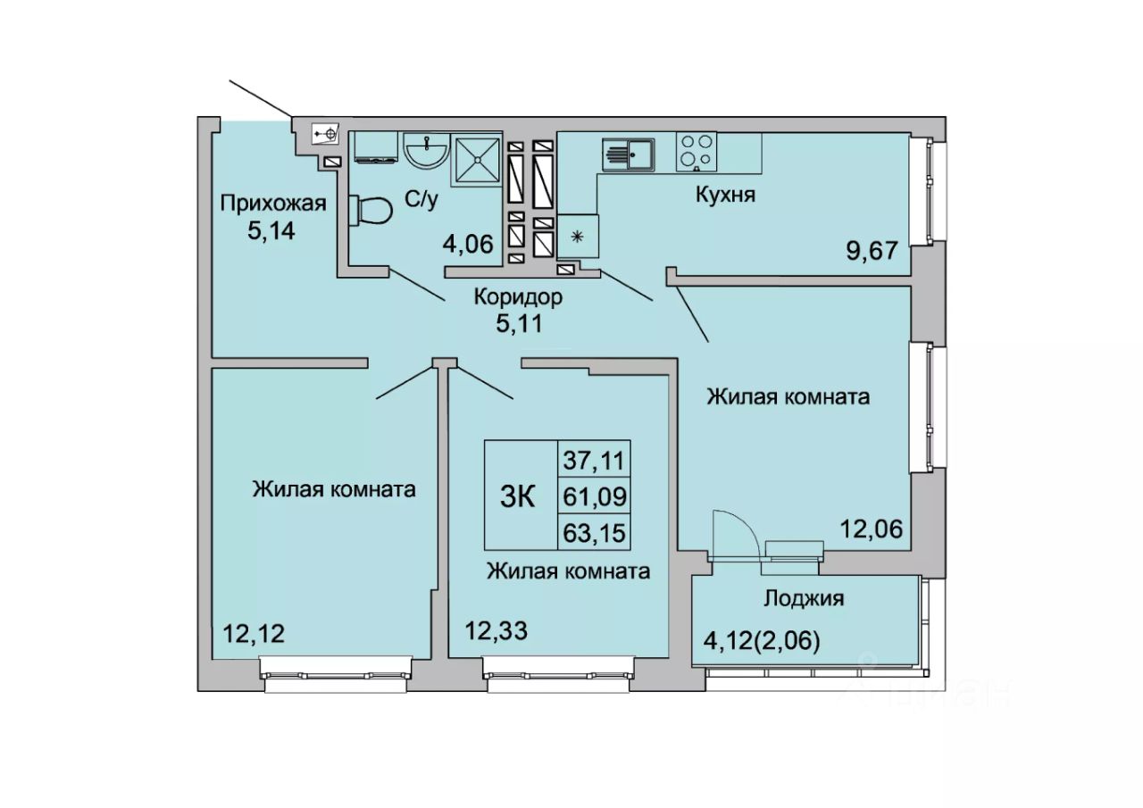 Общая площадь63,15 м²