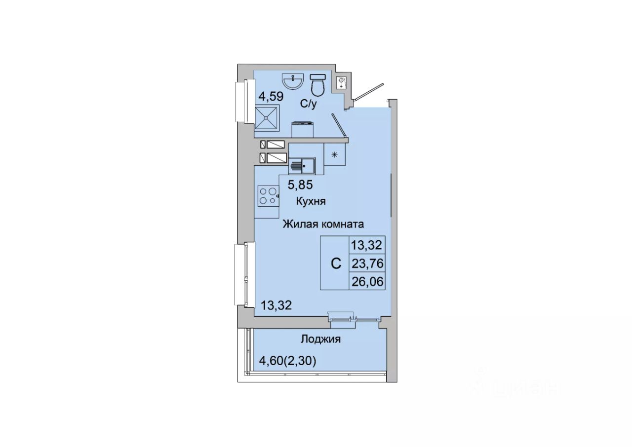 Общая площадь26,06 м²