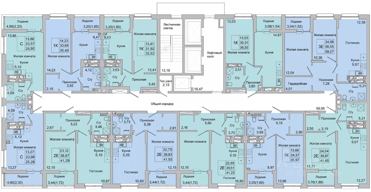 Общая площадь58,07 м²