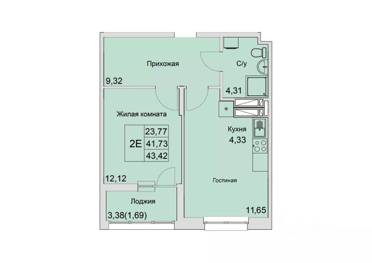 Общая площадь43,42 м²