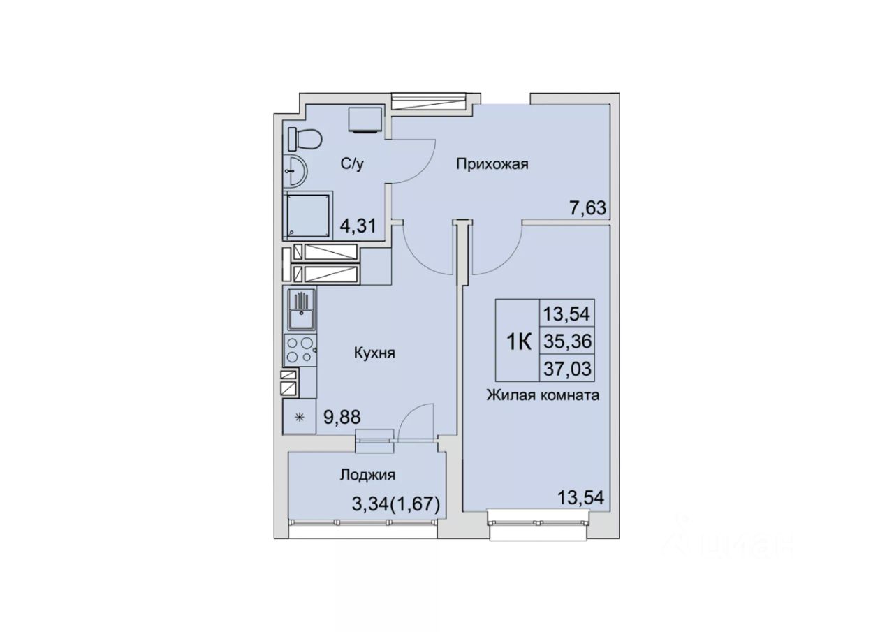 Общая площадь37,03 м²
