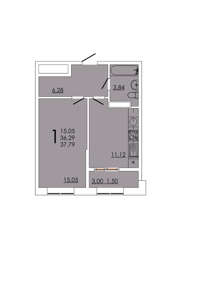 Общая площадь37,79 м²