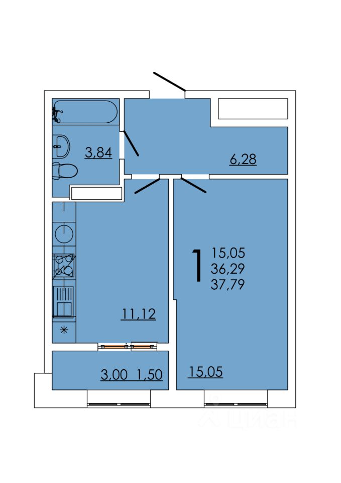 Общая площадь37,79 м²