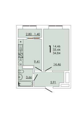 Общая площадь34,84 м²