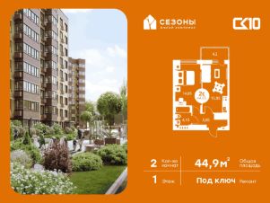 Продаётся 2-комнатная квартира в строящемся доме (Дом 1), срок сдачи: IV-кв. 2026, общей площадью 44.85 кв.м., на 1 этаже. ЖК Сезоны 1 это уникальный проект, созданный вдалеке от шума и суеты мегаполиса. Радоваться каждому дню в любом возрасте здесь будет проще - внутреннее состояние удовольствия поддерживает окружающая обстановка.