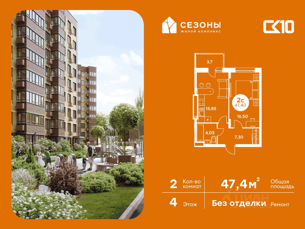 Продаётся 2-комнатная квартира в строящемся доме (Дом 1), срок сдачи: IV-кв. 2026, общей площадью 47.4 кв.м., на 4 этаже. ЖК Сезоны 1 это уникальный проект, созданный вдалеке от шума и суеты мегаполиса. Радоваться каждому дню в любом возрасте здесь будет проще - внутреннее состояние удовольствия поддерживает окружающая обстановка.