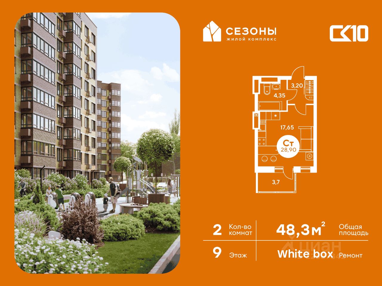 Продаётся 2-комнатная квартира в строящемся доме (Дом 1), срок сдачи: IV-кв. 2026, общей площадью 48.3 кв.м., на 9 этаже. ЖК Сезоны 1 это уникальный проект, созданный вдалеке от шума и суеты мегаполиса. Радоваться каждому дню в любом возрасте здесь будет проще - внутреннее состояние удовольствия поддерживает окружающая обстановка.