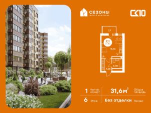Продаётся студия в строящемся доме (Дом 2), срок сдачи: IV-кв. 2026, общей площадью 31.55 кв.м., на 6 этаже. ЖК Сезоны 1 это уникальный проект, созданный вдалеке от шума и суеты мегаполиса. Радоваться каждому дню в любом возрасте здесь будет проще - внутреннее состояние удовольствия поддерживает окружающая обстановка.