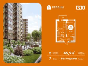Продаётся 2-комнатная квартира в строящемся доме (Дом 2), срок сдачи: IV-кв. 2026, общей площадью 45.85 кв.м., на 7 этаже. ЖК Сезоны 1 это уникальный проект, созданный вдалеке от шума и суеты мегаполиса. Радоваться каждому дню в любом возрасте здесь будет проще - внутреннее состояние удовольствия поддерживает окружающая обстановка.