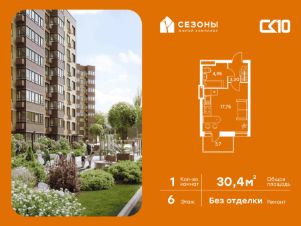 Продаётся студия в строящемся доме (Дом 4), срок сдачи: IV-кв. 2026, общей площадью 30.35 кв.м., на 6 этаже. ЖК Сезоны 1 это уникальный проект, созданный вдалеке от шума и суеты мегаполиса. Радоваться каждому дню в любом возрасте здесь будет проще - внутреннее состояние удовольствия поддерживает окружающая обстановка.