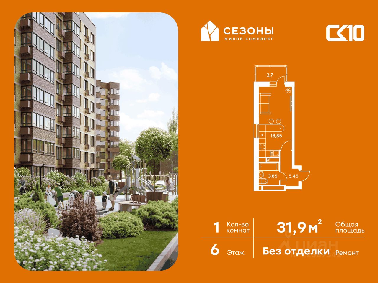 Продаётся студия в строящемся доме (Дом 4), срок сдачи: IV-кв. 2026, общей площадью 31.85 кв.м., на 6 этаже. ЖК Сезоны 1 это уникальный проект, созданный вдалеке от шума и суеты мегаполиса. Радоваться каждому дню в любом возрасте здесь будет проще - внутреннее состояние удовольствия поддерживает окружающая обстановка.