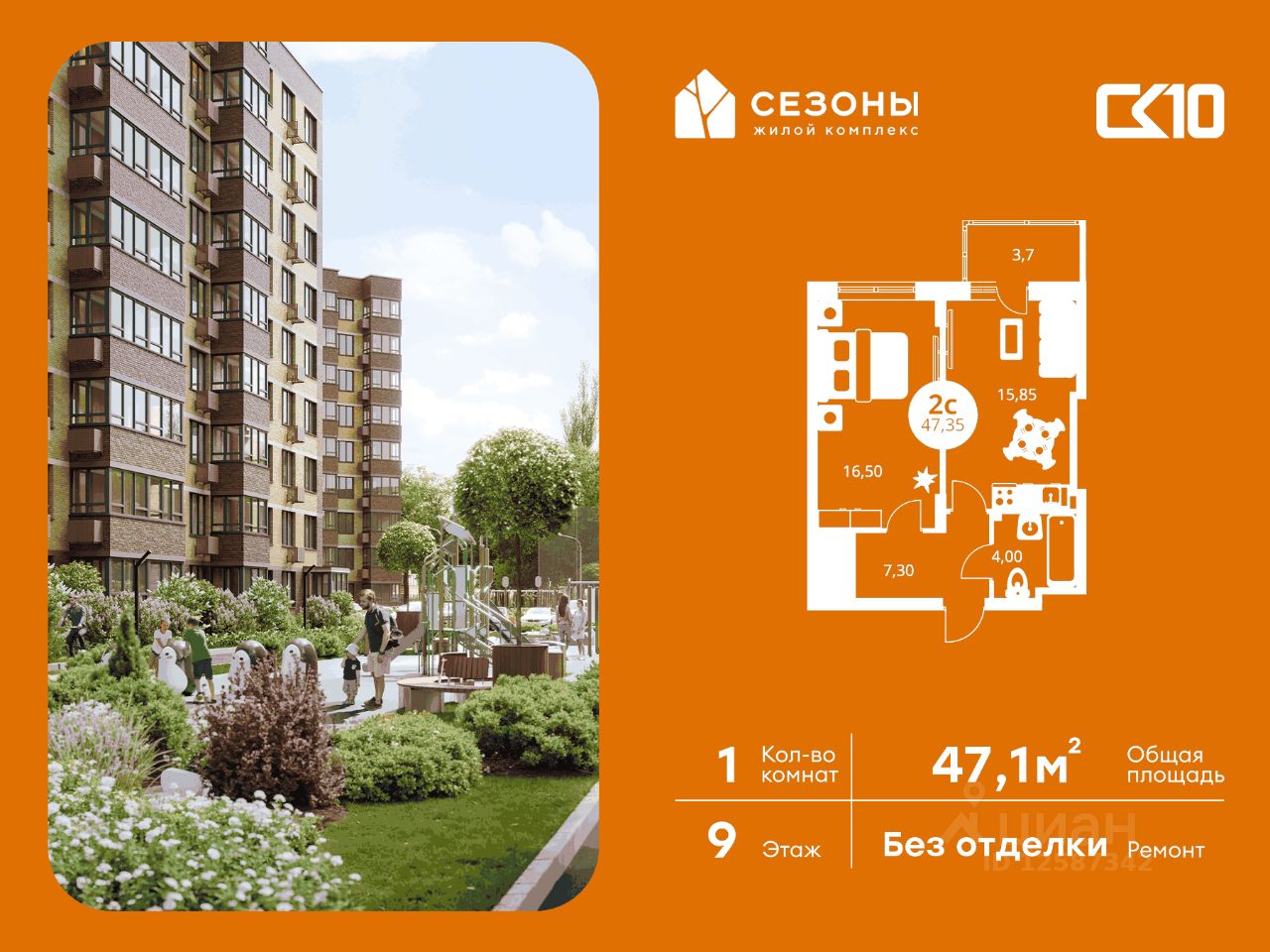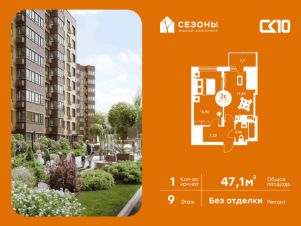 Продаётся 1-комнатная квартира в строящемся доме (Дом 4), срок сдачи: IV-кв. 2026, общей площадью 47.1 кв.м., на 9 этаже. ЖК Сезоны 1 это уникальный проект, созданный вдалеке от шума и суеты мегаполиса. Радоваться каждому дню в любом возрасте здесь будет проще - внутреннее состояние удовольствия поддерживает окружающая обстановка.