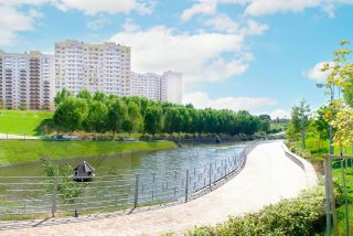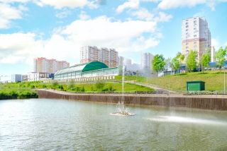 3 живописных озера с благоустроенной набережной, лавочками, фонтанами и световыми инсталляциями.