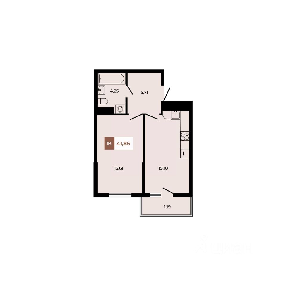 В продаже 1- комнатная квартира площадью 41,86 кв м на 2 этаже от застройщика. Ремонт в подарок!