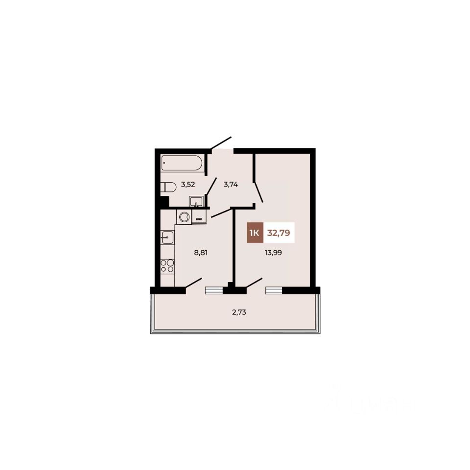 В продаже 1- комнатная квартира площадью 32,79 кв м на 1 этаже от застройщика. Ремонт в подарок!