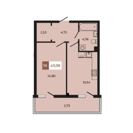 В продаже 1- комнатная квартира площадью 43,08 кв м на 1 этаже от застройщика. Ремонт в подарок!