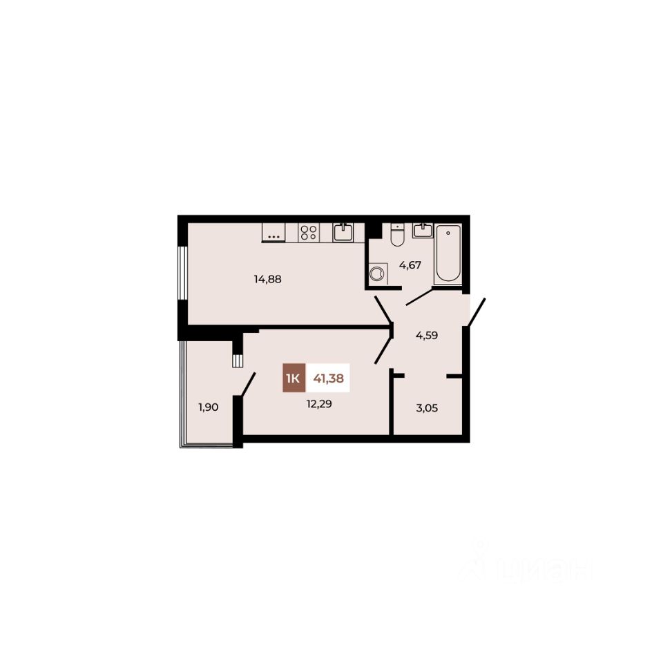 В продаже 1- комнатная квартира площадью 41,38 кв м на 2 этаже от застройщика. Ремонт в подарок!