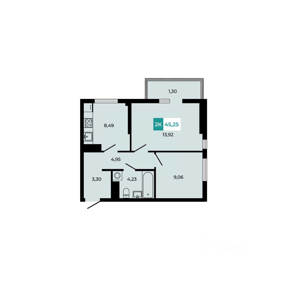 В продаже 2- комнатная квартира площадью 45,25 кв м на 6 этаже от застройщика. Ремонт в подарок!
