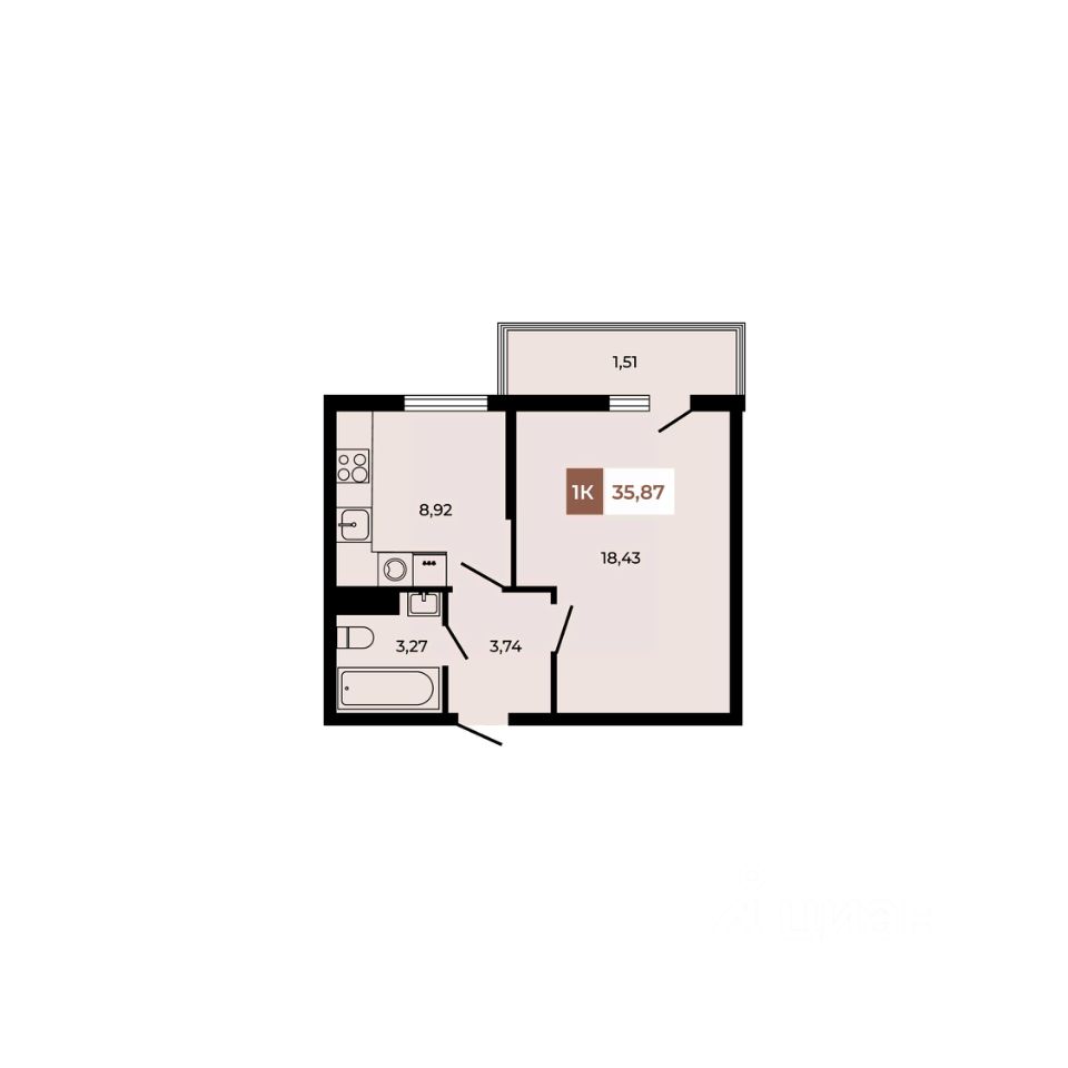 В продаже 1- комнатная квартира площадью 35,87 кв м на 3 этаже от застройщика. Ремонт в подарок!
