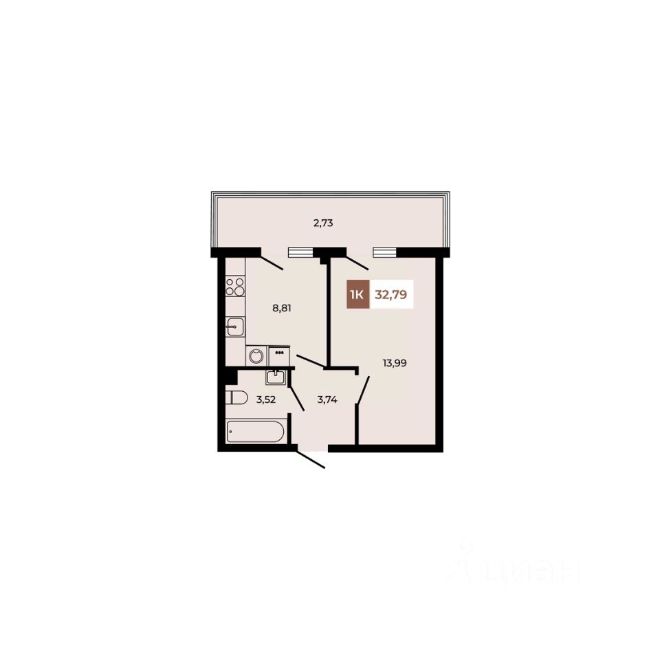 В продаже 1- комнатная квартира площадью 32,79 кв м на 1 этаже от застройщика. Ремонт в подарок!