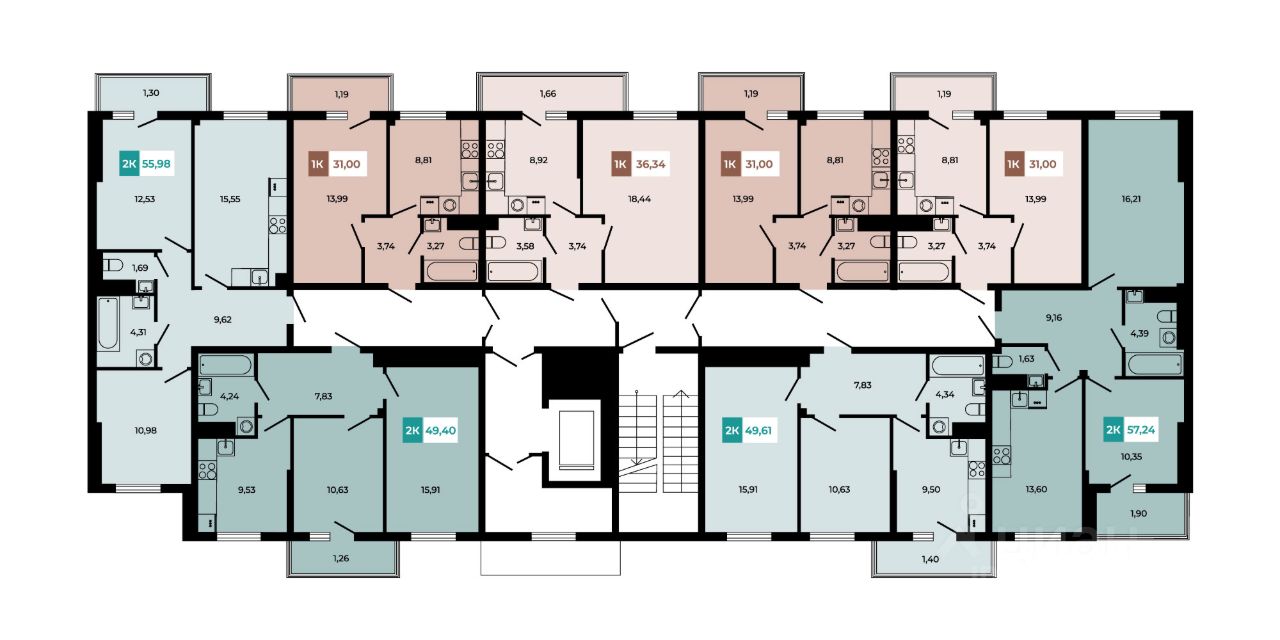 В продаже 2- комнатная квартира площадью 55,98 кв м на 2 этаже от застройщика. Ремонт в подарок!