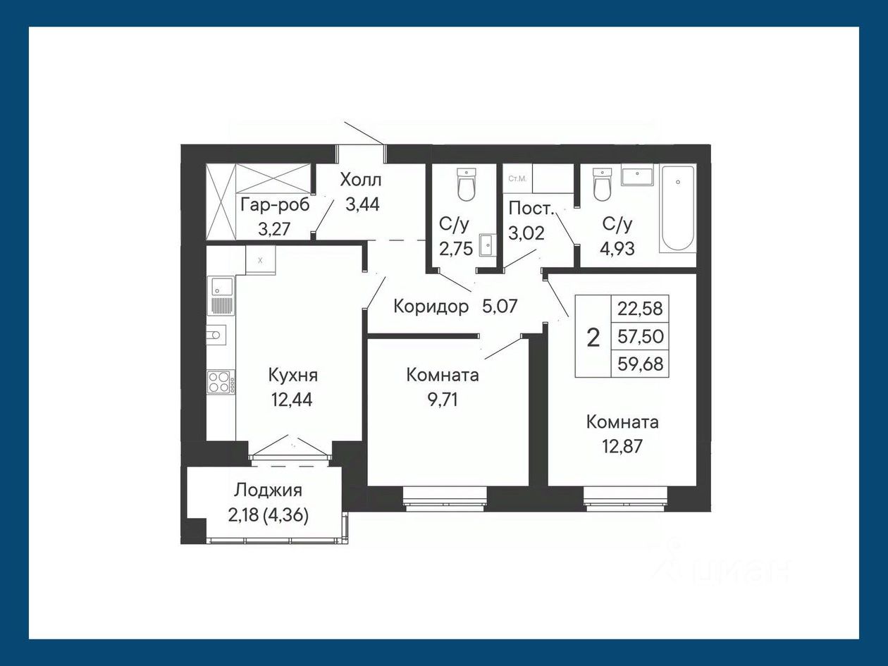 Общая площадь59,68 м²