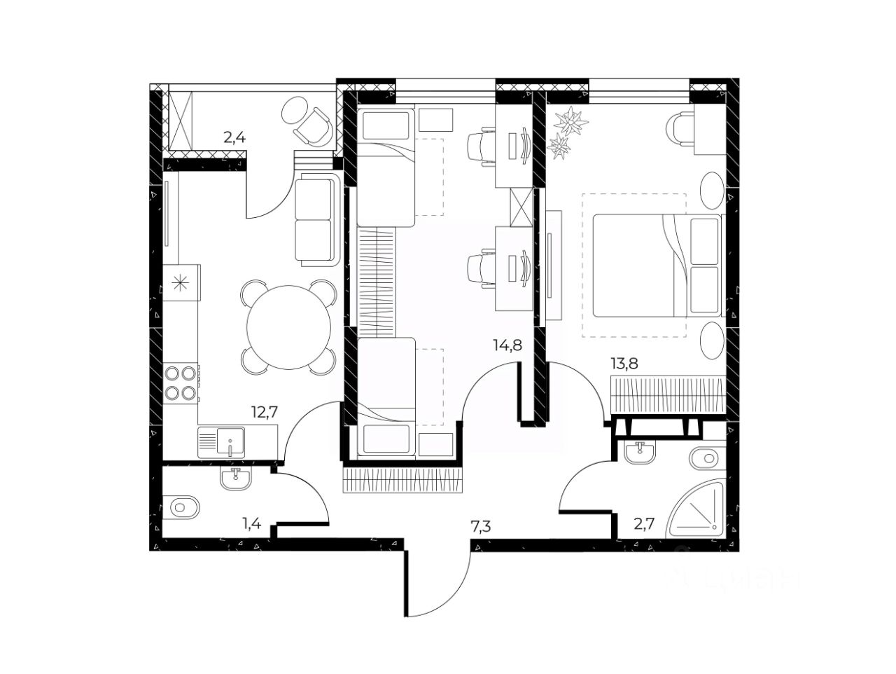 Коллекционируйте воспоминания о счастливых днях. В большой кухне-гостиной соберитесь с самыми близкими, встретьтесь с друзьями в гостиной, играйте с ребенком и изучайте новых сказочных героев в светлой детской, по-настоящему отдыхайте в уютной спальне насыщенного дня или проведите свидание с солнцем и потрясающим видом на балконе с панорамными окнами.
