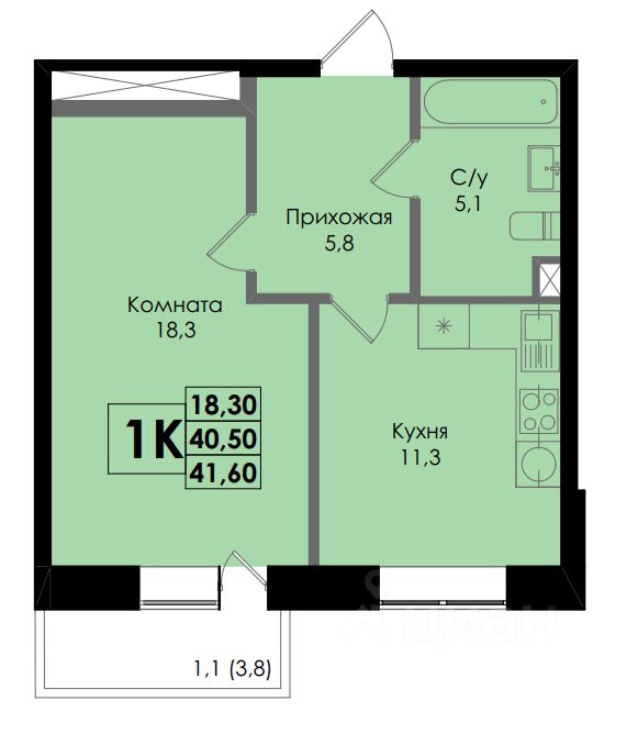 Площадь кухни11,3 м²